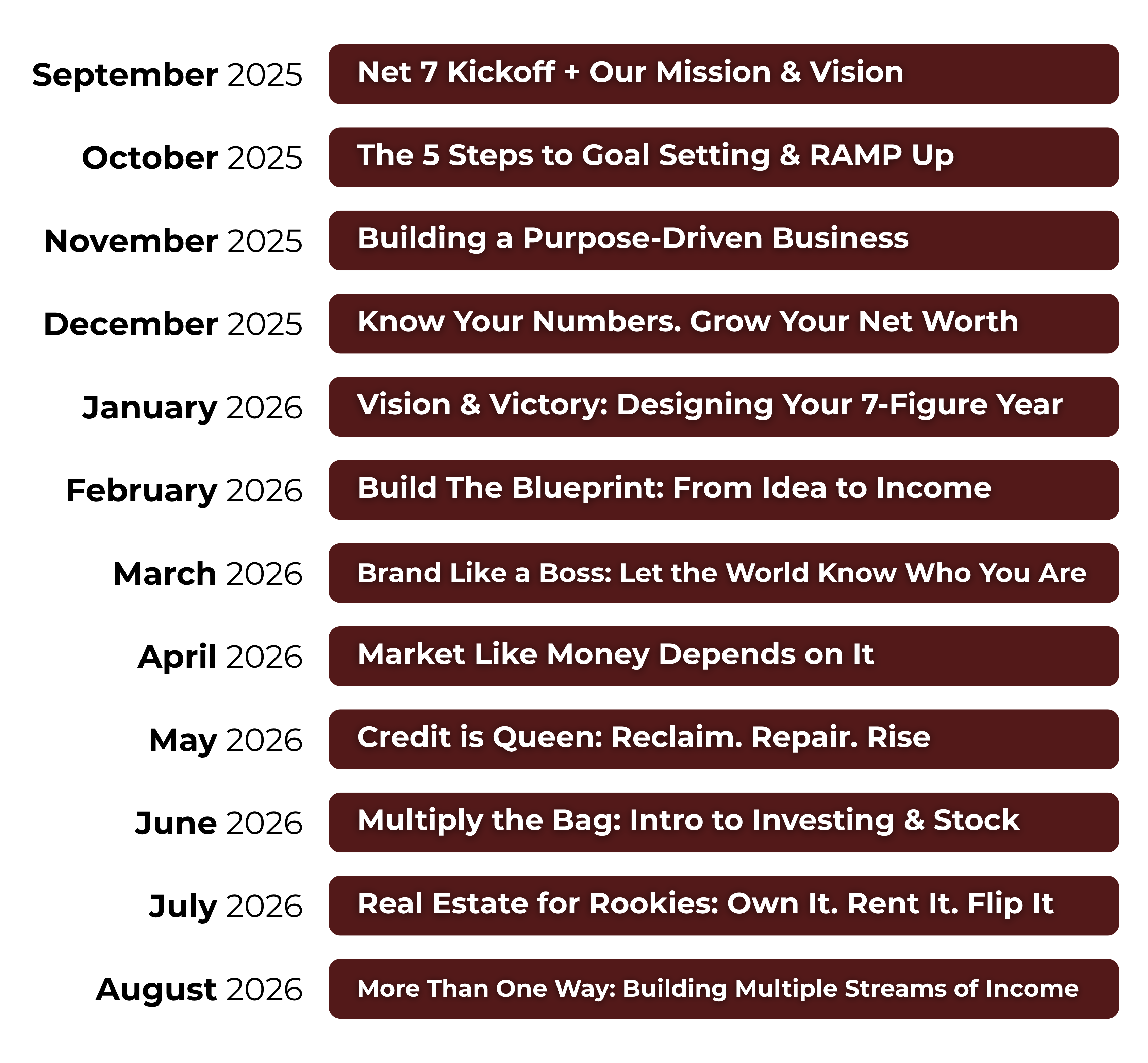 This is the heartbeat of Net 7 Nation. We rise together, not alone. We build sisterhoods, create safe spaces, and support one another in business, life, and legacy.